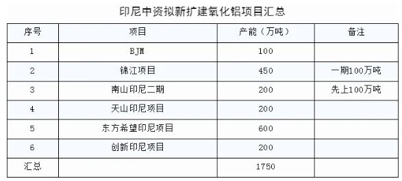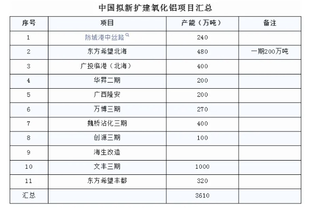 中国新、扩建氧化铝产能(国内外)超5000万吨!