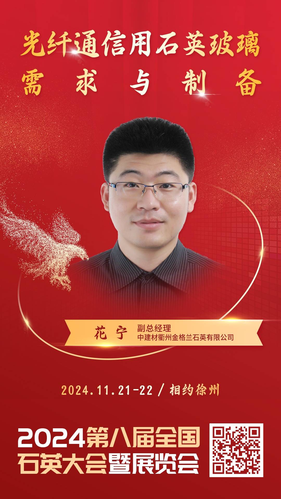 2024年11月21-22日,由中国粉体网主办的“2024(第八届)全国石英大会暨展览会”将在江苏徐州召开,中建材衢州金格兰石英有限公司的副总经理花宁将做《光纤通信用石英玻璃需求与制备》的报告。中建材衢州金格兰石英有限公司前身是北京金格兰石英玻璃有限公司,是中国建筑材料科学研究总院全资子公司,是集研发、生产、销售、服务为一体的现代企业,公司具有完整的石英玻璃冷、热加工生产线,可规模化生产各类石英玻璃及制品,在光纤配套材料用高性能石英玻璃方面具有多年的生产经验,先后负责或参加起草《光纤制造用石英玻璃把持棒》、《光纤拉丝用石英玻璃把持管》等国家标准及行业标准10余项。在本届石英大会上,花宁副总经理将全方位解读光纤行业用石英玻璃的制备工艺及技术要求。