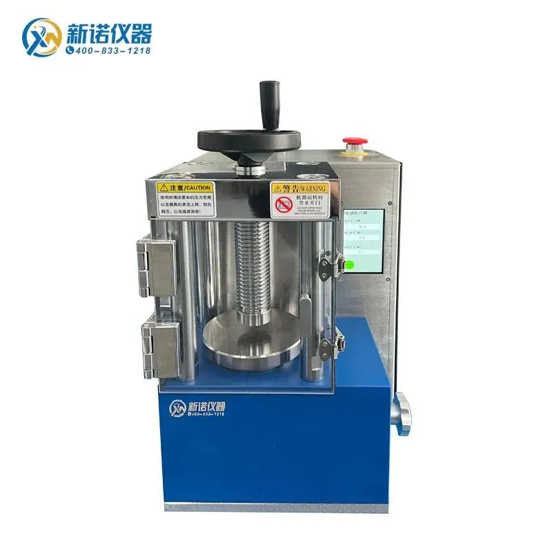 该机采用四立柱设计,配上特定模具,可与钙铁分析,红外光谱(IR), X荧光(XRF)等分析仪配套使用;广泛应用于超导、电池、粉末冶金、先进陶瓷、建材水泥、化工制药等研发领域。