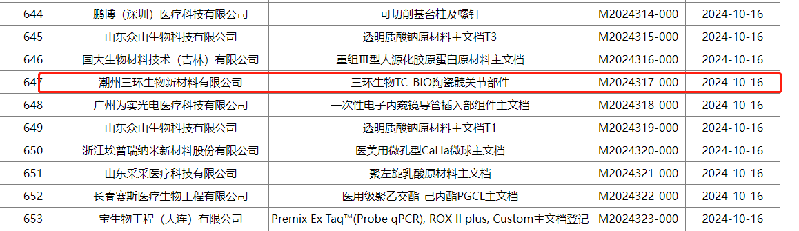 中国粉体网迅 近日,三环生物“TC-BIO陶瓷髋关节部件”已成功通过国家药品监督管理局医疗器械技术审评中心主文档登记。