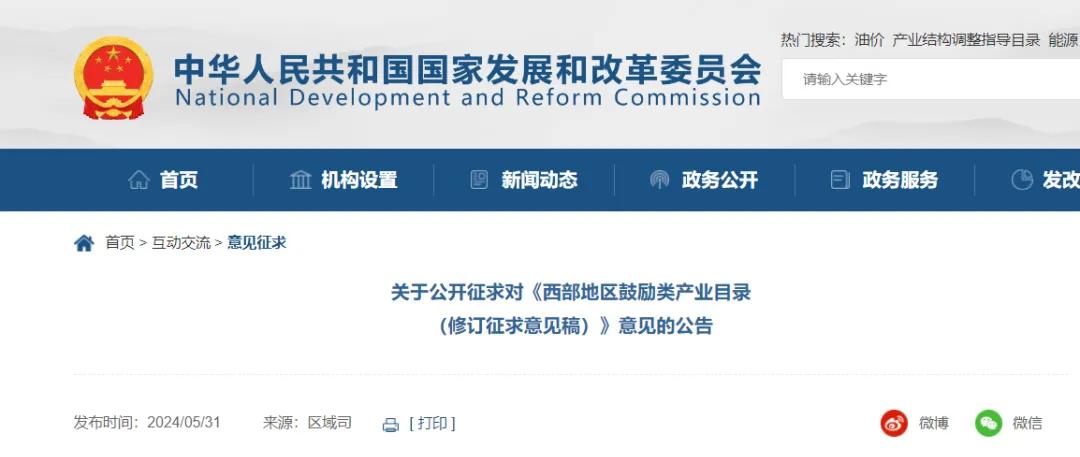 《西部地区鼓励类产业目录(修订征求意见稿)》