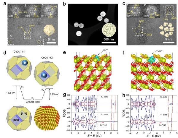 中国科学技术大学曾杰教授团队在单原子催化的晶面效应研究中取得重要研究进展。研究人员通过适当的制备方法,在形貌为截角八面体的二氧化铈最小结构单元上实现了铂在不同晶面上的定向原子沉积。常规的浸渍法制备使铂原子位于八面体侧边占主要暴露的(111)晶面上,而紫外光沉积则使铂原子稳定在截角八面体顶端(100)晶面形成的“纳米口袋”中。不同晶面上的铂单原子展现出迥异的一氧化碳催化氧化性能,其关键影响因素在于不同二氧化铈晶面上铂单原子所处的不同铂-氧配位环境。