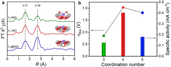 中国科学技术大学曾杰教授研究团队研究发现氧化镍负载的铱单原子催化剂在阳极水氧化反应中的活性和铱单原子的第二壳层铱-氧-镍配位数呈火山型关系。