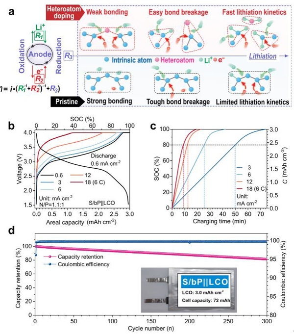 国科学技术大学季恒星教授、武晓君教授团队联合加州理工洛杉矶分校段镶锋教授团队,在快充型锂离子电池领域取得突破性进展。研究人员成功突破传统意义上固/液、固/气等两相界面上的电催化模型,实现了一种全新的“固相电催化”,并成功将该策略应用于纯固相反应的负极材料中,从而实现了锂离子电池在达到302 Wh kg-1高能量密度的同时实现9 min充电至80%。