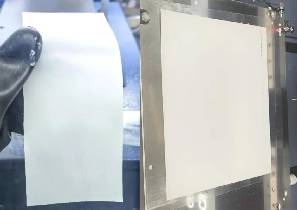 在硫化物电解质膜的研发和生产过程中,中科固能引入湿法成膜工艺,并利用全固态电池产线对产品参数的修正,成功开发8 cm×15 cm及18 cm×18 cm的超薄、高离子电导率的硫化物电解质膜。目前,中科固能正在积极推进连续化生产电解质膜,期望通过效率更高、成本更低的生产模式满足市场需求。