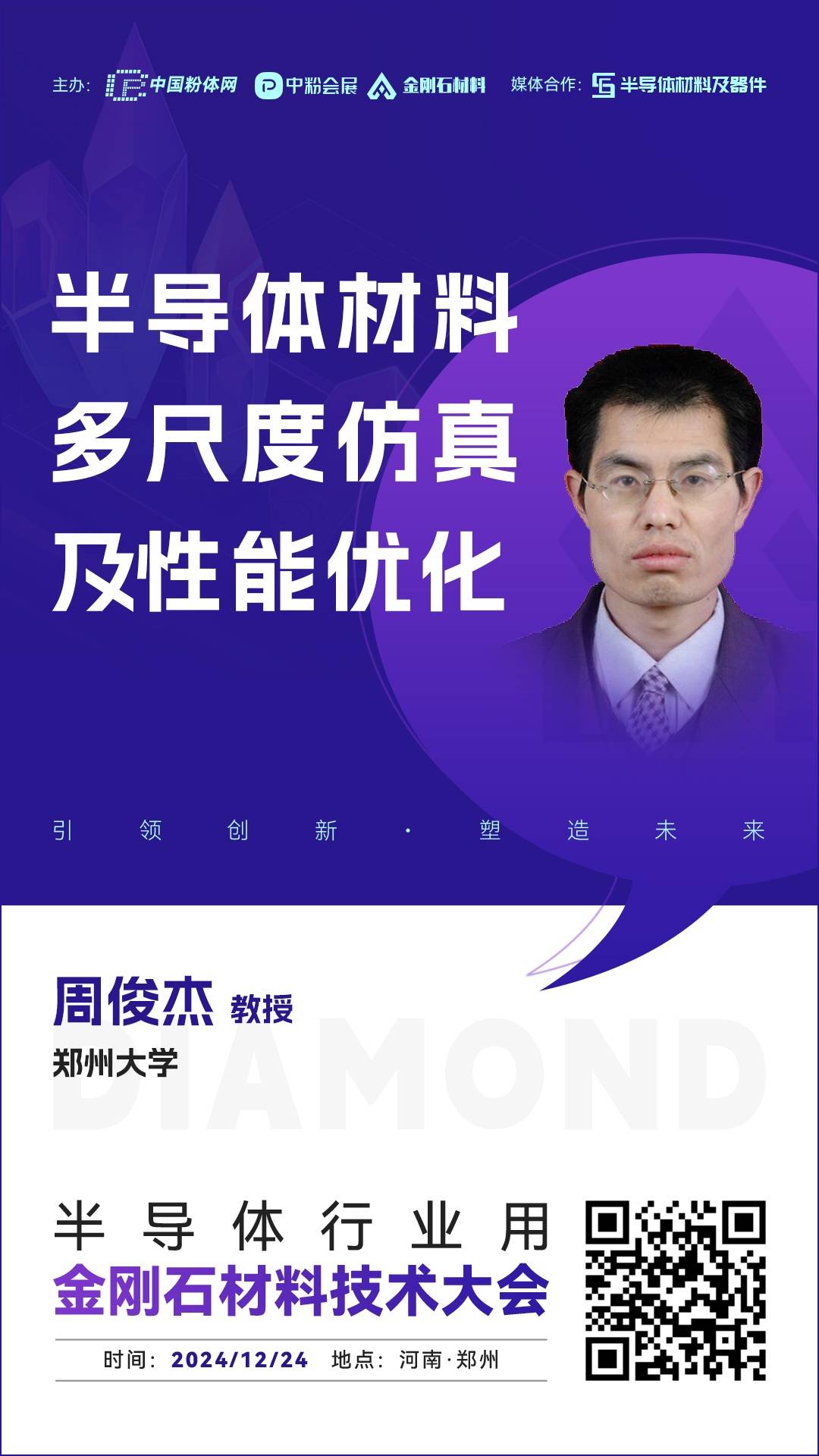 2024年12月24日,中国粉体网将在河南·郑州举办“2024半导体行业用金刚石材料技术大会”。届时,我们邀请到郑州大学周俊杰教授出席本次大会并作题为《半导体材料多尺度仿真及性能优化》的报告,周俊杰教授将围绕材料、器件创新与性能优化等问题,基于多尺度仿真方法对其建模分析,进行性能优化,尤其是硅基半导体材料的性能,并对多尺度仿真技术在半导体材料的应用进行展望。