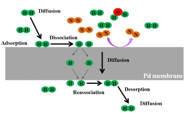⾦属钯能以溶解-扩散的⽅式选择性透过氢⽓,简单来讲,只有氢⽓能透过钯膜,其他⽓体都透不过去,因此分离氢⽓的纯度能达到8个9以上。上世纪70年代就已经被⽤于为半导体⾏业提供超纯氢。但⽬前国内市场上主要是进⼝的钯管产品,厚度⾄少在15微⽶以上,价格昂贵,⽽且其透氢量很低,装置投资和分离能耗很⾼,制氢成本和制氢规模⽆法满⾜未来规模化应⽤的需求。将⾦属钯膜负载在多孔⽀撑体的表⾯,可以制备⾦属钯复合膜,厚度可以降低到5微⽶左右,制备廉价的⾦属钯复合膜,同传统钯管相⽐,其贵⾦属⽤量降低10倍,并且可以获得更⼤的透氢量,使装置投资和纯化成本⼤幅度降低,具有明显的技术经济优势。