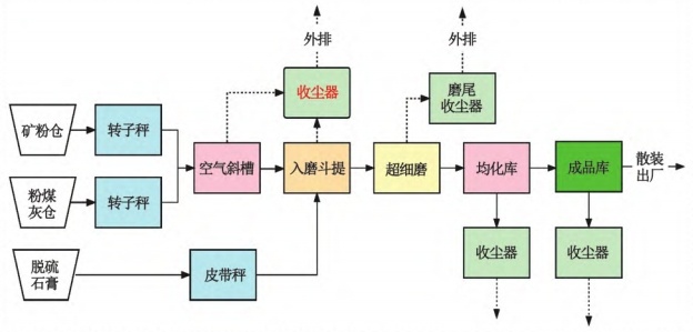 水泥常用矿物掺和料或常见工业固体废弃物基本上都含有二氧化硅、氧化铝、氧化钙、氧化铁等成分,经过超细粉磨后均可使矿物晶体格产生错位、键断裂、重结晶,表面形成易溶于水的非晶态结构,使得水分子更容易进入其内部,加速水化反应,大幅度提高所含矿物的活性指数,再加上科学的配方即可制备出适合于生产水泥的超细复合矿物掺合料。