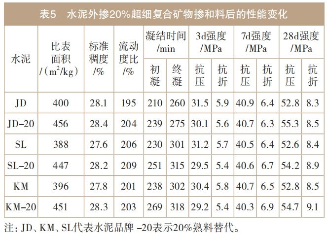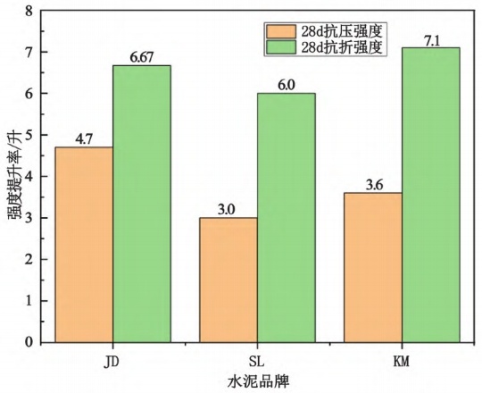 水泥外掺20%超细复合矿物掺和料后的强度提升率对比