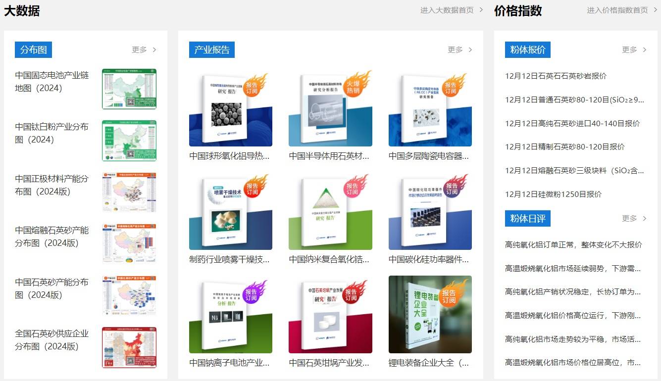 2024年,“粉体大数据研究”平台推出了六方氮化硼、高纯石墨、球形氧化铝导热粉体、半导体用石英材料、多层陶瓷电容器(MLCC)、研磨抛光材料等产业发展研究报告;“中粉资讯”平台围绕石英、碳化硅、氧化铝、碳酸锂、磷酸铁锂等热点粉体,提供产品价格、市场走向在内的全方位市场信息服务;“粉体公开课”平台聚焦颗粒特性表征与测量技术、纳米粉体材料的典型制备技术与应用、锂电回收技术路线及科技前沿、钠离子电池技术、典型行业物料输送除尘策略、高效新能源材料的设计与开发等组织在线学习。助力企业及时了解产业新动态、市场新动向、技术新进展。