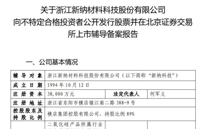 中国粉体网讯 近日,浙江新纳材料科技股份有限公司(以下简称“新纳科技”或“公司”)在浙江证监局办理辅导备案登记,拟向不特定合格投资者公开发行股票并在北交所上市。