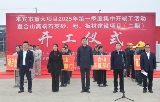 2月17日,广西来宾市重大项目2025年一季度集中开竣工活动暨合山高端石英砂、粉、板材建设项目(二期)开工仪式在合山市岭南镇产业园举行。据悉,该项目全部达产后,可具备年生产25万吨石英砂粉系列产品和300万平方米中高端石英石板材生产能力。