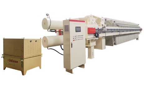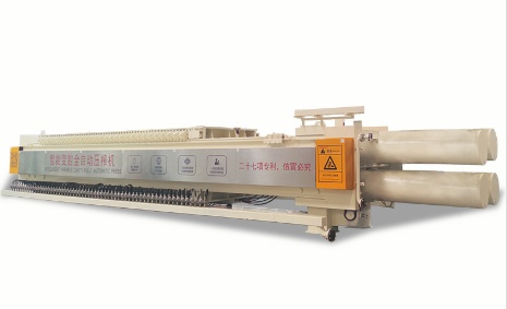 特高压压榨机主要由机架、钢制滤框、钢制滤板、滤布、液压闭合系统、液压弹性挤压系统、自动拉板装置、自动接液翻板装置、自动卸饼清洗系统、中心吹泥系统、智能控制系统等组成。