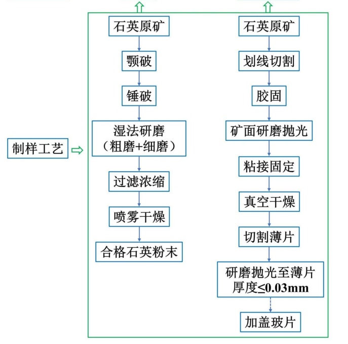 近期,国家知识产权局公布了中国建筑材料科学研究总院有限公司的一种石英原矿工艺矿物学分析方法、一种判断石英原矿能否作为高纯石英原矿的方法。发明将所述石英原矿进行制样,其中粉末样品的制样方法包括依次进行破碎、湿法研磨、过滤浓缩和干燥;将所得粉末样品进行化学成分分析、物相成分分析和晶体结构分析;将所得光学薄片进行电子探针微区分析、激光拉曼光谱分析、岩相学显微分析和包裹体显微分析。