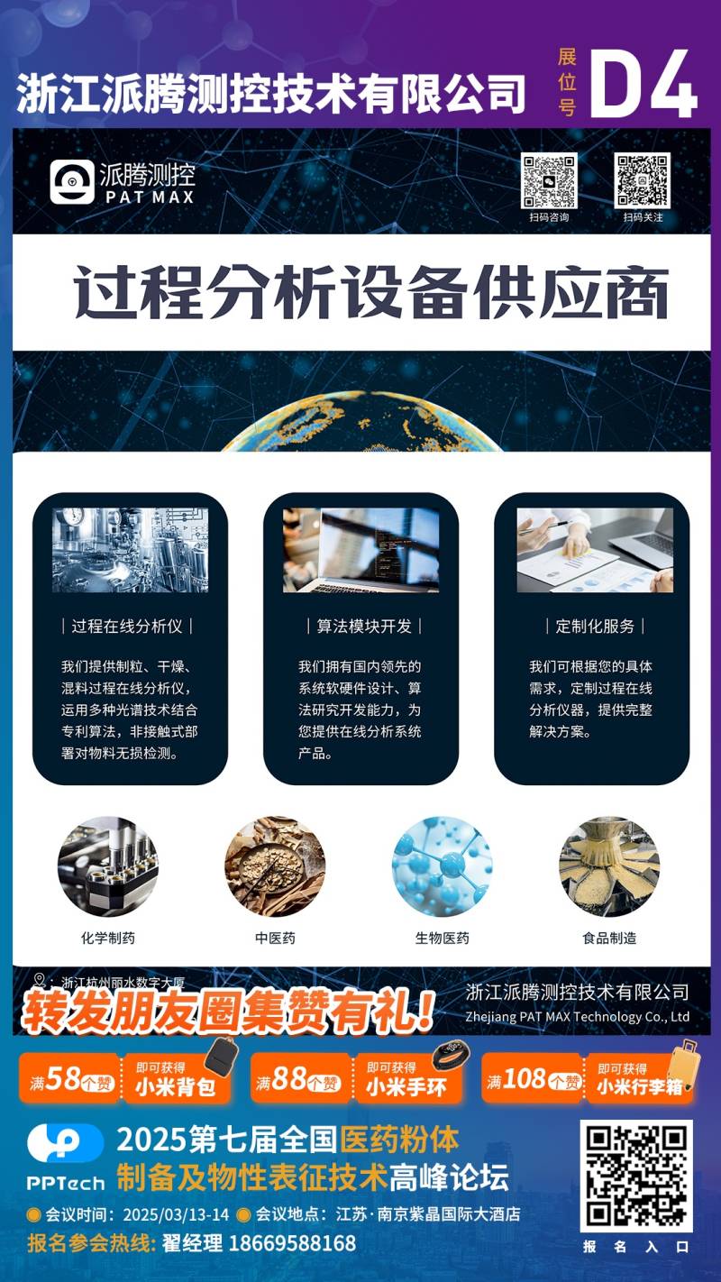 从第七届全国医药粉体制备及物性表征技术高峰论坛组委会获悉,本届会议将于2025年3月13-14日在南京举办。浙江派腾测控技术有限公司作为参展单位邀请您共同出席。