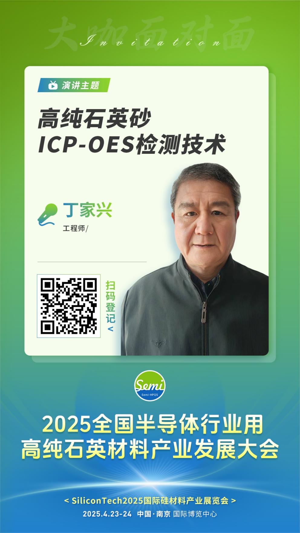 2025年4月23-24日,由中国粉体网、中粉会展主办的“2025全国半导体行业用高纯石英材料产业发展大会”将在江苏南京召开,届时来自江苏东海的工程师丁家兴将做题为《高纯石英砂ICP-OES检测技术》的报告。