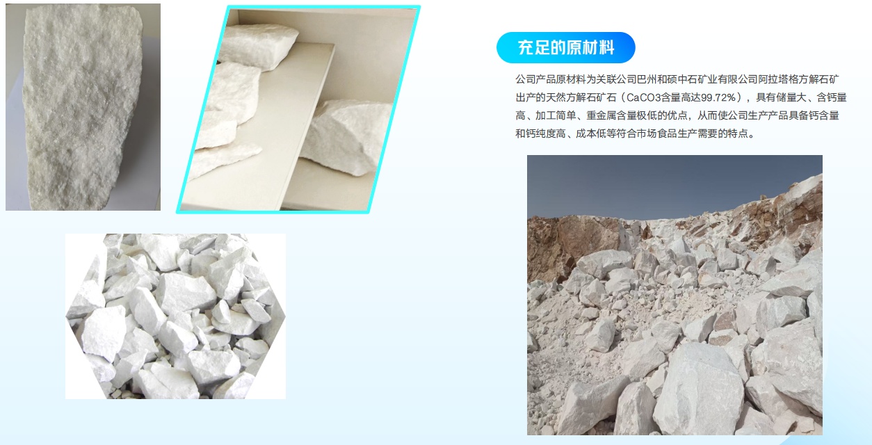 全部项目投产后,公司将成为从生产碳酸钙原料到碳酸钙食品添加剂、到食品级碳酸钙保健品到药品级碳酸钙原料、药品级钙片等系列优质产品的全国唯一一家钙产品全产业链企业。公司该项目一经申报,得到了和硕县政府、巴州地州政府乃至自治区相关领导及部门的高度重视。多次来到我企业,实地了解项目进度并主动询问困难,建立专门工作组,精准帮扶企业。