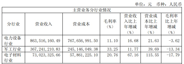 报告期内,公司电子材料业务板块实现销售收入7,302.33万元,同比增长67.16%,是公司三大业务中增速最快的板块。