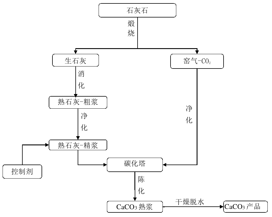 通过调节碳化温度、搅拌速度、CO2、气体流速、通气方式、液相浓度等条件,来控制碳酸钙不同结晶阶段的反应速度,最终达到控制晶体大小与形貌的目的。