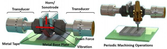 中国粉体网讯 近日,哈工大(威海)张洪涛教授团队成功研制国内首套双换能器超声固相增材制造装备,通过“双换能器+双变幅杆”推挽式结构设计,系统功率达6000-9000瓦,能量传输效率提升50%以上,突破传统单换能器设备的功率限制。该装备采用低温固相连接工艺,利用高频超声振动(20kHz)产生的机械能与摩擦热实现金属箔材逐层固结,加工温度低于材料熔点,避免高温氧化、相变及残余应力问题,尤其适用于铜/铝、铝/钛等异种金属的高质量复合制造。
