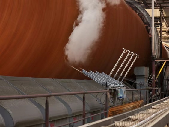 磨机专家系统的核心运作机制在于精密构建粒度仪检测数据、O-sepa选粉机转速、高浓度风机效率、出磨提升机性能、循环风机状态、辊压机双进料装置的精确调节,以及磨机台时效率等多维度参数之间的动态关联模型。该系统以粒度仪的实时检测数据为核心调控依据,旨在维持产品质量的持续稳定。在此基础上,系统采用逆向调优策略,即从磨后工序出发,逆向逐级优化调整至前端各相关变量,以确保整体流程的协调与高效。特别地,除了辊压机功率控制模块采用其特有的控制逻辑外,其余所有控制模块均智能地以切入自动模式时的基准参数为起点,进行灵活而精准的调整,从而最大化系统效能与产品质量的双重优化。由于二次燃料的使用越来越多,加之燃烧过程中的温度波动,导致耐火材料负荷增加,有可能出现窑壳-热点。为了减轻这种负担,常规方法是加装大型散热风扇用来降温。但是风扇的冷却由于空气热容低,冷却效果有限,而且噪音大,能耗高,德国KIMA窑筒体冷却系统采用窑壳红外水冷却系统,具有延长窑炉运行时间、降低机械张力、低噪音、低能耗等特点。