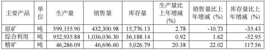 报告期内,随着募集资金投资项目的落地,公司精矿产能爬坡释放,公司精矿产品产销量同比涨幅均超20%。