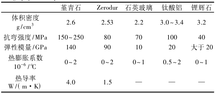此外,堇青石材料的弹性模量远远超过了Zerodur(即大约增加了55%),而密度只是略高于Zerodur。同时堇青石的导热系数几乎是Zerodur的三倍,这决定了材料在使用过程中能够更大程度地散热,从而更好地满足热稳定性需求。