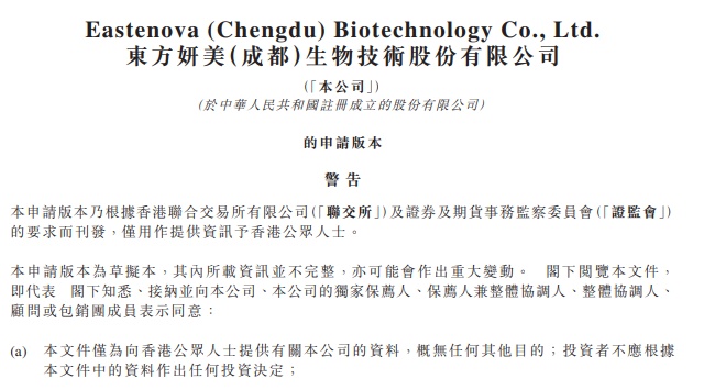 5月12日,东方妍美(成都)生物技术股份有限公司Eastenova (Cheng du) Biotechnology Co.,Ltd.(“东方妍美”)向港交所递交招股书,拟香港主板IPO上市。