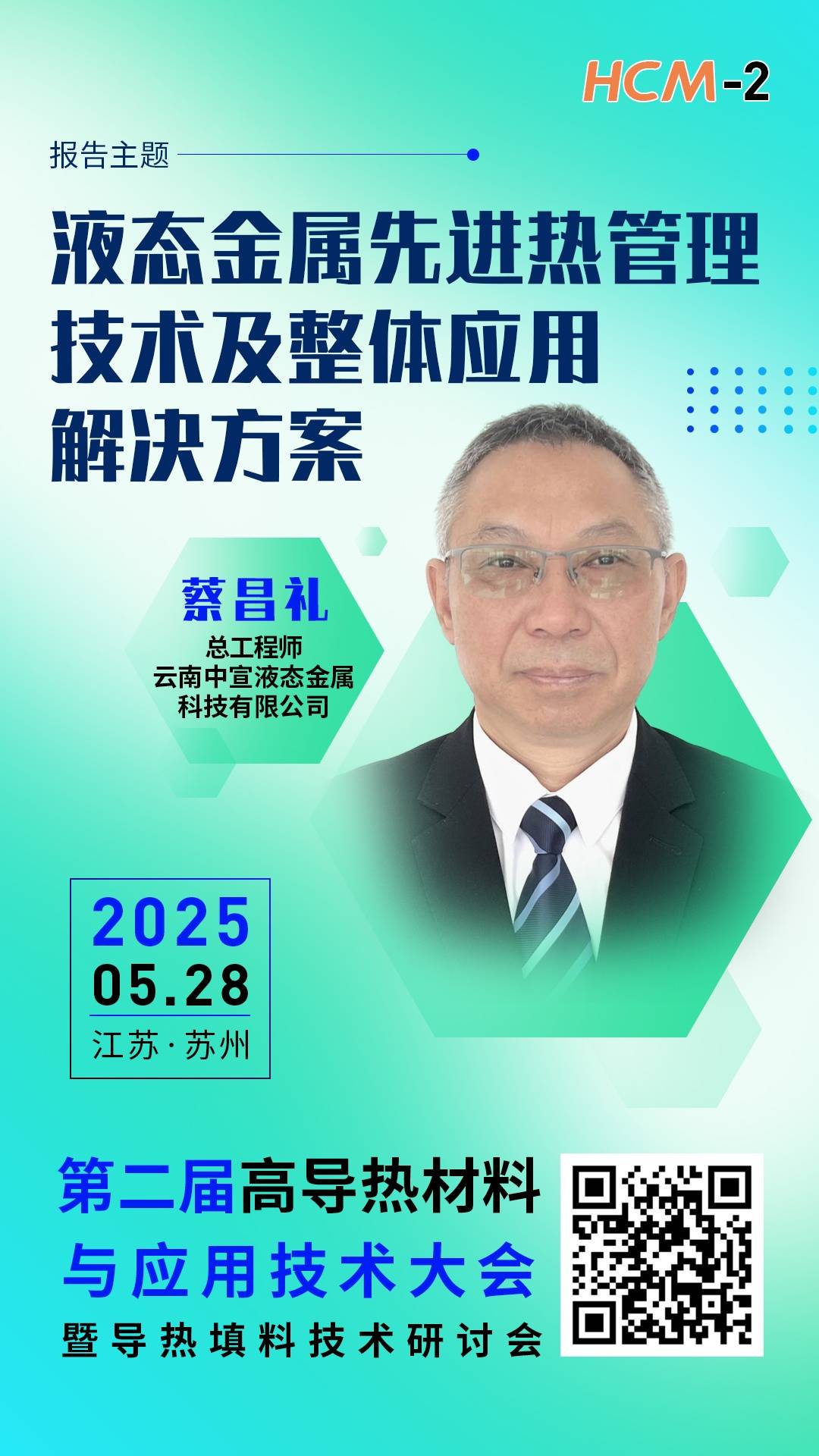 2025年5月28日,中国粉体网将在江苏·苏州举办“第二届高导热材料与应用技术大会暨导热填料技术研讨会”。届时,我们邀请到云南中宣液态金属科技有限公司总工程师蔡昌礼出席本次大会并作题为《液态金属先进热管理技术及整体应用解决方案》的报告。本报告将聚焦中宣液态10余年来在液态金属热管理领域的技术沉淀(特别是液态金属热界面材料领域相关技术),详细讲述中宣液态金属相关产品以及整体解决方案,并对液态金属热管理技术的应用前景和发展方向进行展望。