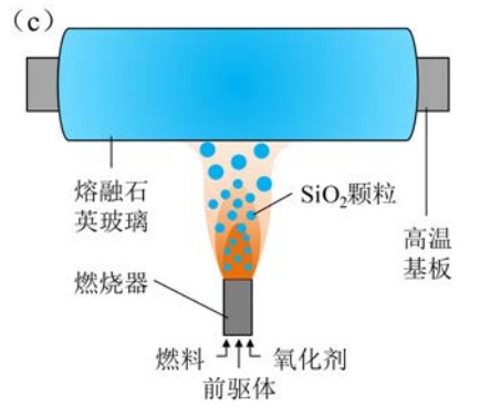 相比于直接法,间接合成法的优势在于沉积速度快、成本低、易掺杂和脱羟,适合深紫外透过、高抗激光损伤石英玻璃的制造,可用于光刻和激光技术领域。