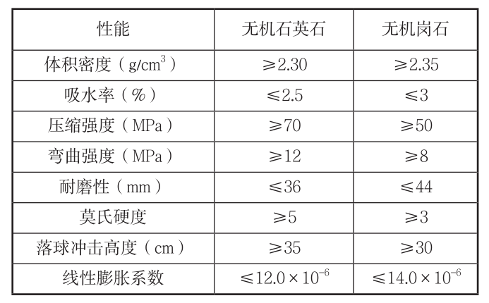 与有机人造石相比,在制备过程中,无机人造石一般不使用有机胶黏剂和外加剂,导致其强度、吸水率等物理性能低于有机人造石。但有机材料的生产、使用过程往往对环境带来不良影响。因此,无机人造石被认为是一种更加绿色环保的建筑装饰材料。在使用安装过程中,由于有机人造石材料的有机属性,导致其在室外的耐候性、热稳定性和耐火性较差,容易发生变形开裂,基本只用于室内装饰。同时有机人造石的有机界面与水泥的粘结性较差,往往需要使用瓷砖胶等材料,对铺设安装过程中也容易造成不便。
