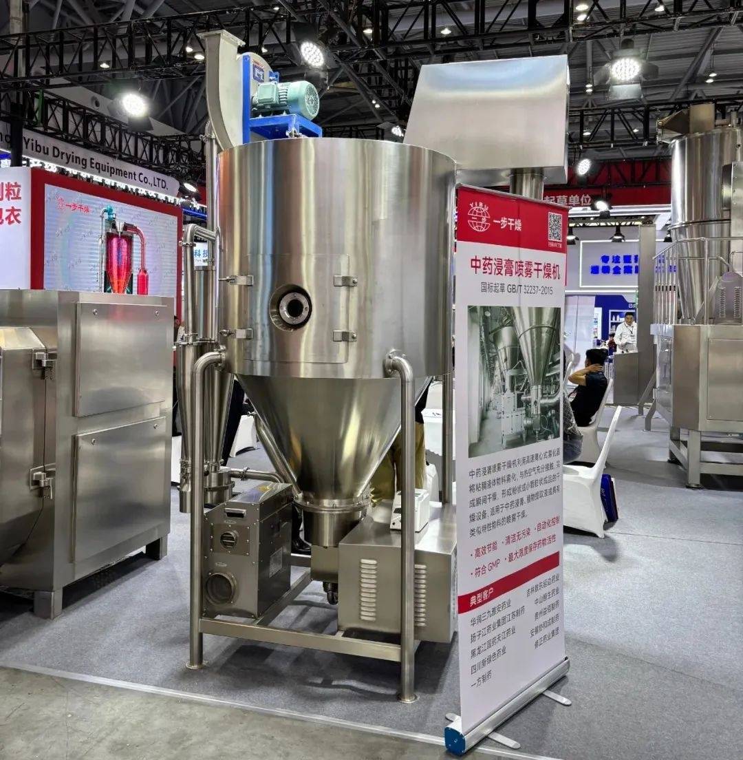 今年,在第66届(2025年春季)全国制药机械博览会暨中国国际制药机械博览会上,作为国内干燥设备行业领军企业,一步干燥重点展示了智能化喷雾干燥系统、新型固体制剂制粒干燥联线、脉冲真空干燥机、多功能制粒包衣机、卧式沸腾干燥机、料斗混合机、沸腾干燥制粒机、湿法混合制粒机、提升机等制药装备行业核心产品。其中,智能化喷雾干燥系统搭载最新智能控制技术,凭借热敏性物料保护、精准温控、能耗优化、智能化升级等优势,成为制药与高端原料药领域客户关注的焦点。此外,中药浸膏喷雾干燥机系列产品在中药配方颗粒、植物提取物等领域表现优异,有效解决高粘性、易吸湿等行业难题,目前已累计500+国内外知名药企已投入使用该产品。