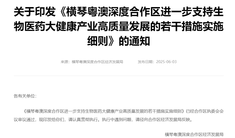 中国粉体网讯 近日,新修订的《横琴粤澳深度合作区 进一步支持生物医药大健康产业高质量发展的若干措施》(简称《若干措施》)正式印发。