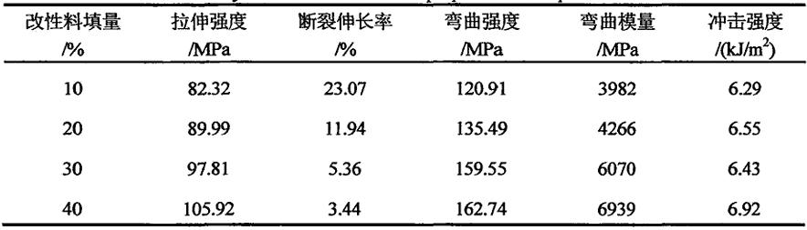 由于硅灰石具有针状结构和刚性特点,在PA6中加入适量的改性硅灰石可显著改善材料的力学性能,特别是弯曲弹性模量提高非常显著。张晶等研究表明,在PA6中加入30%的改性硅灰石,材料的拉伸强度、弯曲强度、弯曲弹性模量、悬臂梁缺口冲击强度分别提高22.3%、34.1%、62.9%、6.7%,但断裂伸长率明显降低。