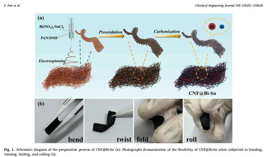 CNF@Bi-Sn的制备示意图及其柔性展示
