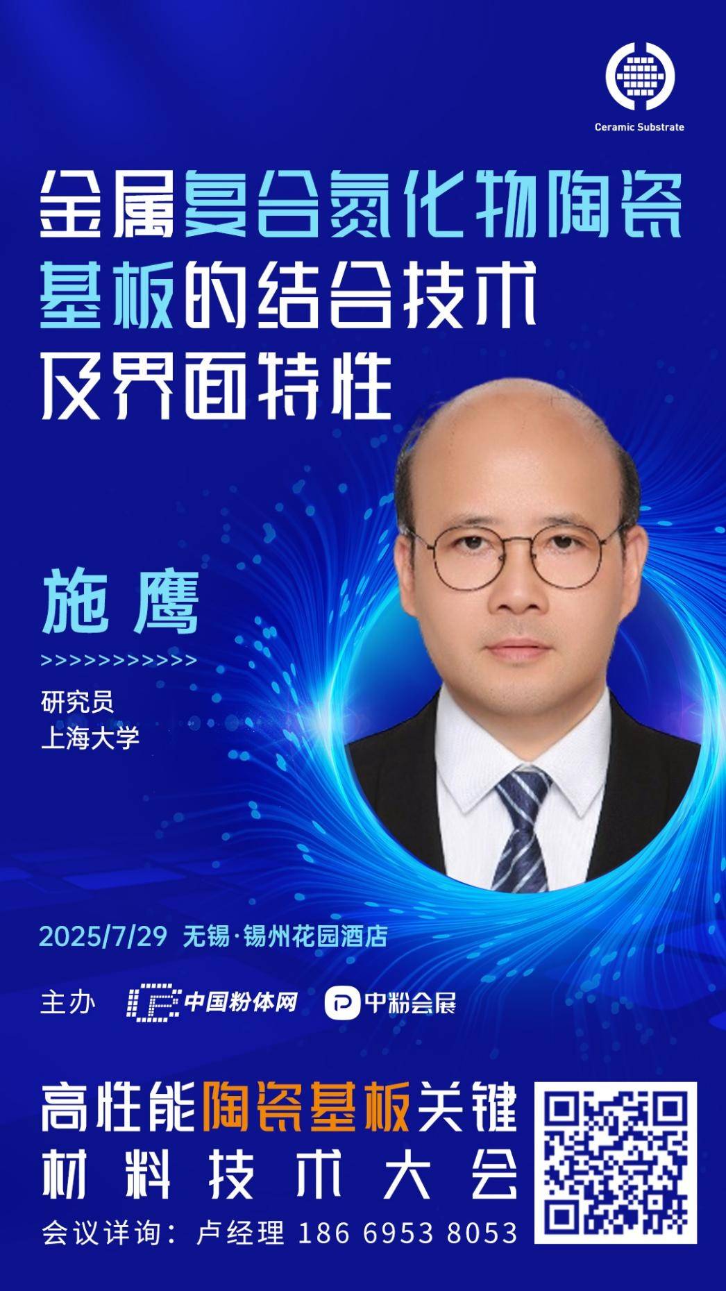 半导体及电子信息产业的快速发展对核心材料的性能提出了更高要求。陶瓷基板作为功率半导体器件的关键封装材料,其导热性能、机械强度、可靠性和精密程度直接决定了终端产品的性能与寿命。针对材料研发、制备工艺、检测技术、应用场景等核心议题,中国粉体网将于2025年7月29日在江苏无锡举办2025高性能陶瓷基板关键材料技术大会。届时,上海大学研究员施鹰将作题为《金属复合氮化物陶瓷基板的结合技术及界面特性》的报告,报告聚焦丝网印刷厚膜金属化方法,重点介绍了Cu/AlN和Cu/Si3N4陶瓷基板的叠层制备工艺,对制备条件与其结合特性和界面结构的关系进行了阐述。