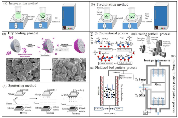 目前Al2O3表面涂层的包覆方法主要有:浸渍法、沉淀法、干法包覆工艺、溅射法以及原子层沉积(ALD)法等。