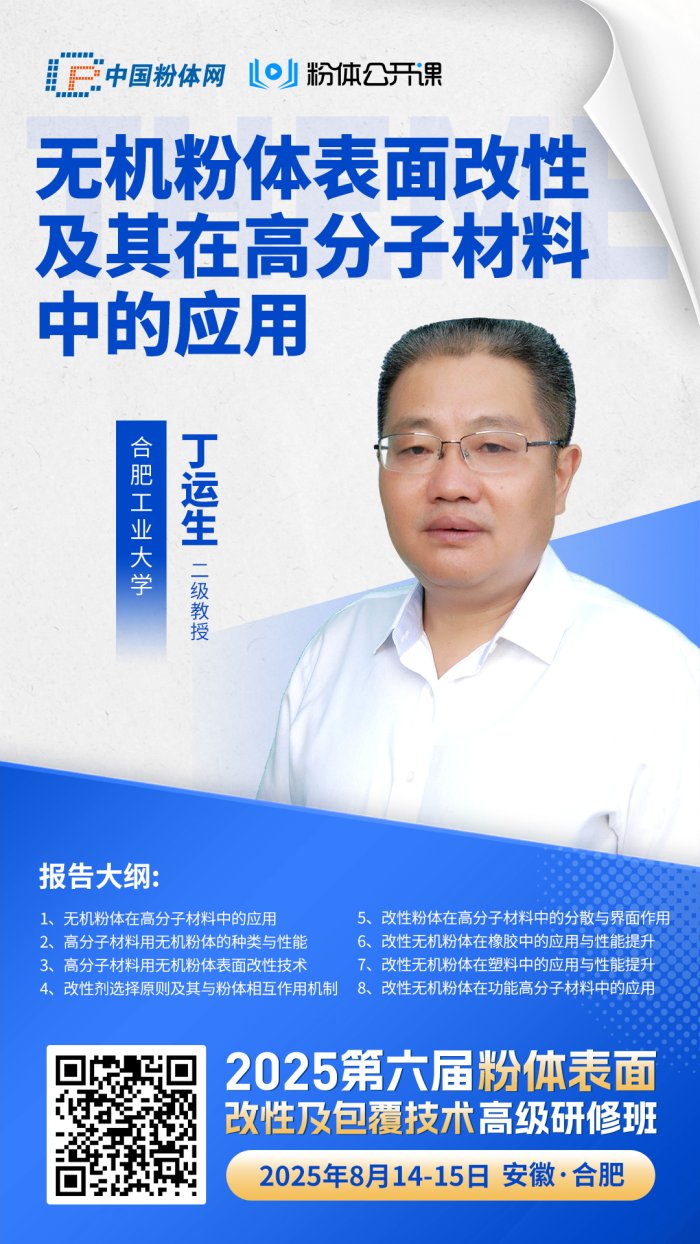 中国粉体网讯 为推动粉体表面改性及包覆技术发展,促进产学研交流合作,中国粉体网粉体公开课将于2025年8月14-15号,在安徽省合肥市举办“2025第六届粉体表面改性及包覆技术高级研修班”,安徽固瑞特新材料科技有限公司邀您一同参加!