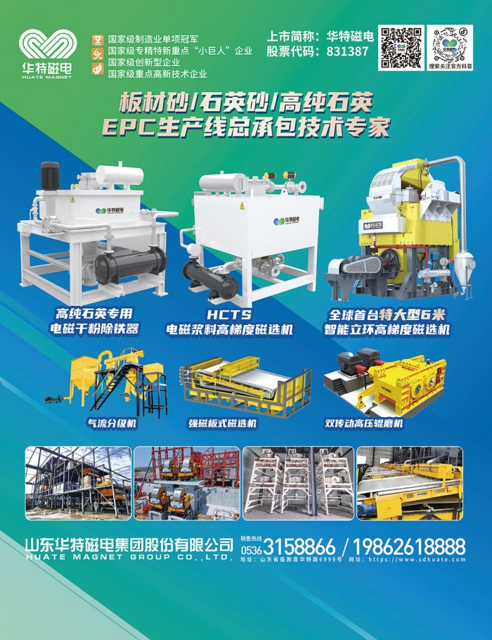 由中国粉体网主办的“2025第六届全国板材用石英砂供需洽谈会”将于8月8日在山东枣庄举办,山东华特磁电集团股份有限公司邀您一同参加。