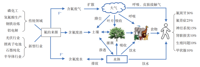 氟性质活泼、分布广泛,虽是人体的微量元素,但高氟含量物质的接触通常对动植物和人体有害,容易引发氟斑牙、氟骨症、神经系统病变、破坏生态系统平衡等问题。据悉,当饮用水中氟含量高于4毫克/升时,氟斑牙的患病率可达到100%,并可能导致氟骨症的发生,严重影响人们的日常生活质量。