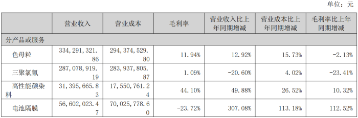 中国粉体网讯 报告期内,美联新材实现营业收入87,771.77万元,较上年同期上升3.10%,实现归属于上市公司股东的净利润减少1,619.25万元,比上年同期下降146.89%。其中,色母粒业务营收334,291,321.86元,同比增长12.92%;毛利率11.94%,同比下降2.13%。