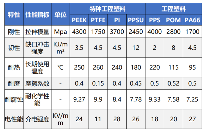 PEEK材料全称为聚醚醚酮,属于特种工程塑料,最早由英国帝国化学公司在1978年研发。它在工程塑料领域堪称金字塔尖的存在,性能全面且强悍,与普通金属相比毫不逊色,对比其他塑料材料也优势明显。
