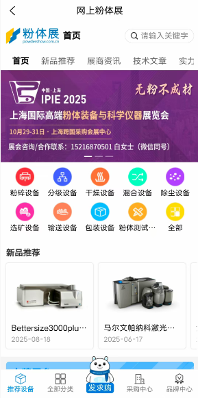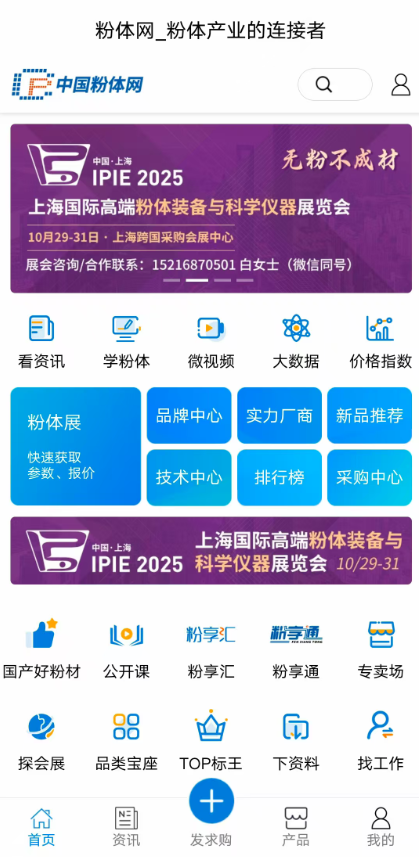 苹果版本:APP stroe内搜索“粉体网”,可获取下载或Safari浏览器打开https://apps.apple.com/app/id6752845905获取下载。