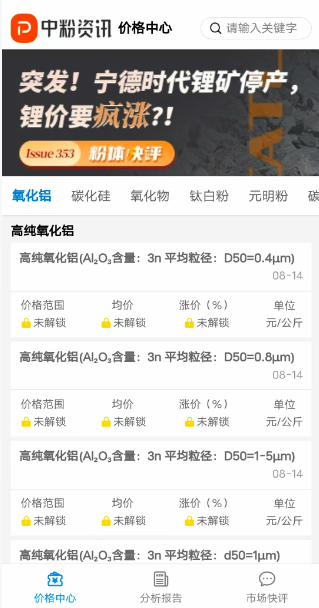 5、 知价格:了解粉体价格,让粉体材料及相关产业数据为你创造价值。