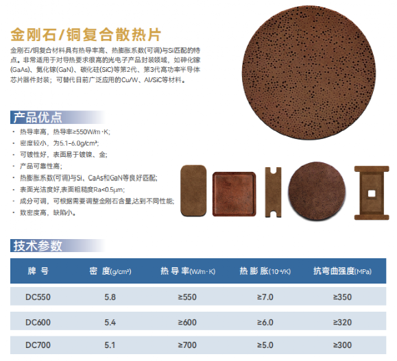 1.金刚石/铜复合散热片