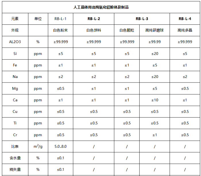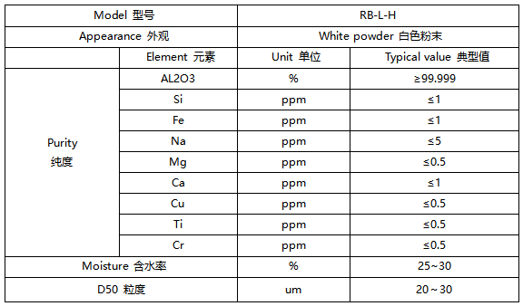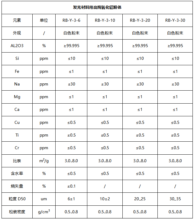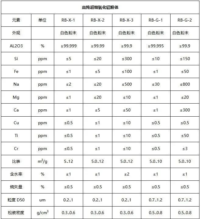 高纯氧化铝粉呈白色无味微粉,粒度可控制,分布均匀,化学性能稳定,多用于人工晶体如蓝宝石、红宝石、YAG晶体、发光材料、陶瓷领域等。