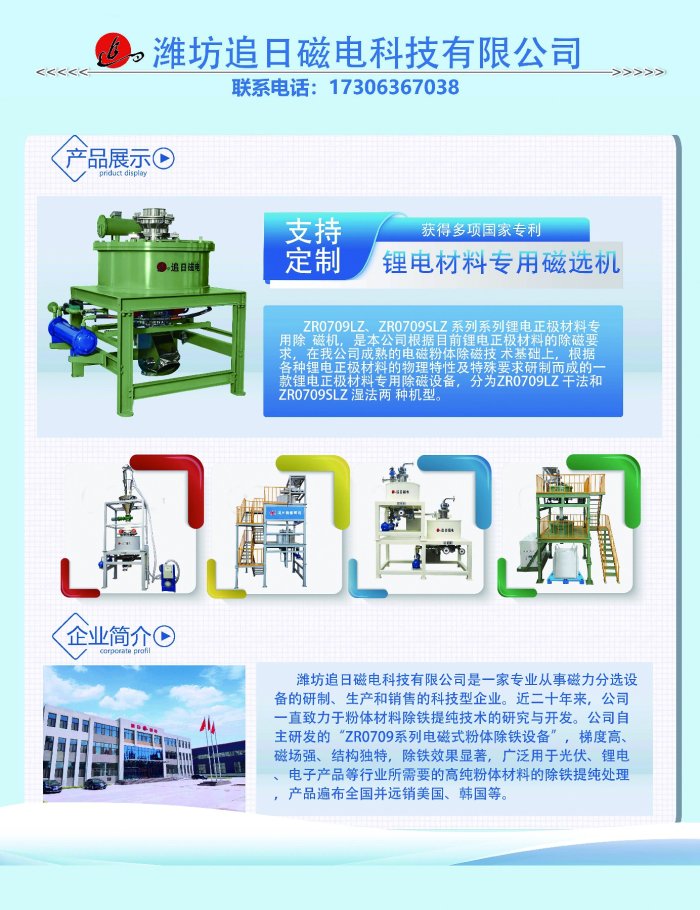2025高压实磷酸(锰)铁锂技术大会将于2025年11月26日在江苏常州举办。潍坊追日磁电科技有限公司作为参展单位邀请您共同出席。