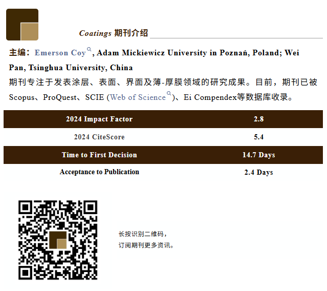 2025材料涂层科学与技术研讨会 (MCST’2025) 将于2025年11月21–23日在湖北武汉隆重举行。本次会议由MDPI Coatings 期刊主办,中国硅酸盐学会特种陶瓷分会承办,华中科技大学材料成形与模具技术全国重点实验室协办。大会主席由潘伟 (清华大学)、赵晓峰 (上海交通大学)、杨冠军 (西安交通大学)、涂溶 (武汉理工大学)、张诚 (华中科技大学)共同担任。本届研讨会旨在深化涂层科学与技术领域的学术交流,推动涂层技术创新与产业发展,大会已邀请到多位知名专家学者做专题报告,并设有科研仪器与技术成果展览,为学界与业界搭建高水平的交流平台。
