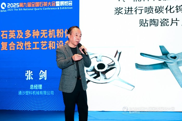 通沙塑料机械有限公司总经理张剑作《石英及多种无机粉体复合改性工艺和设备》报告