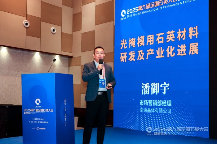 南通晶体有限公司市场营销部经理潘御宇作《光掩模用石英材料研发及产业化进展》报告